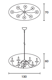 CASHO70NH length 130 cm, width 70 cm, height 60 cm, 8x G9, 11 kg, nickel finish