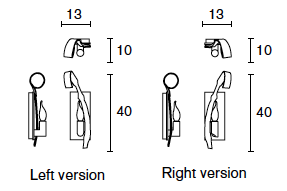 DW20N-L width 13 cm, depth 10 cm, height 40 cm, 1x E14, 2,5 kg, left version