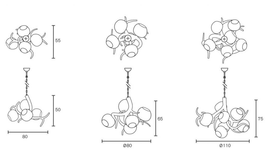 Options for the spheres are clear glass, iridescent glass or a bronze translucent glass.