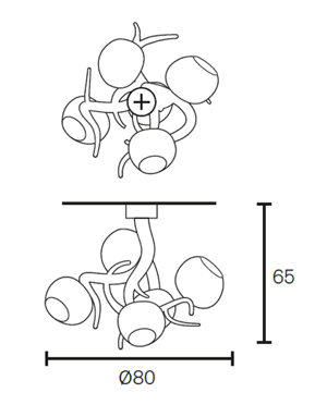 ERSACP80BRBUR-GLBRO, Ø80cm, height 65cm, 5 x E27, brass burnish finish, glass sphere clear