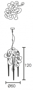 KEF60B, Ø60xH.120 cm, 3 x E27, bronze finish