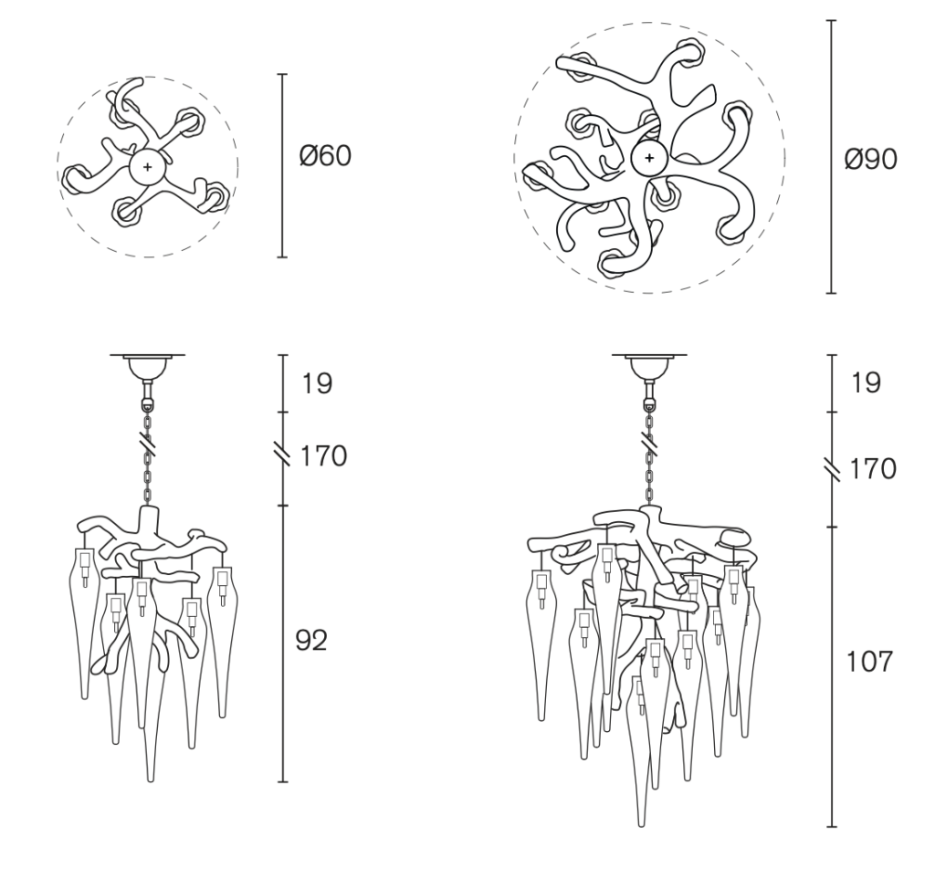 PRIC60BRBUR, Ø60xH.92 cm, 6x G9, brass burnished finish
