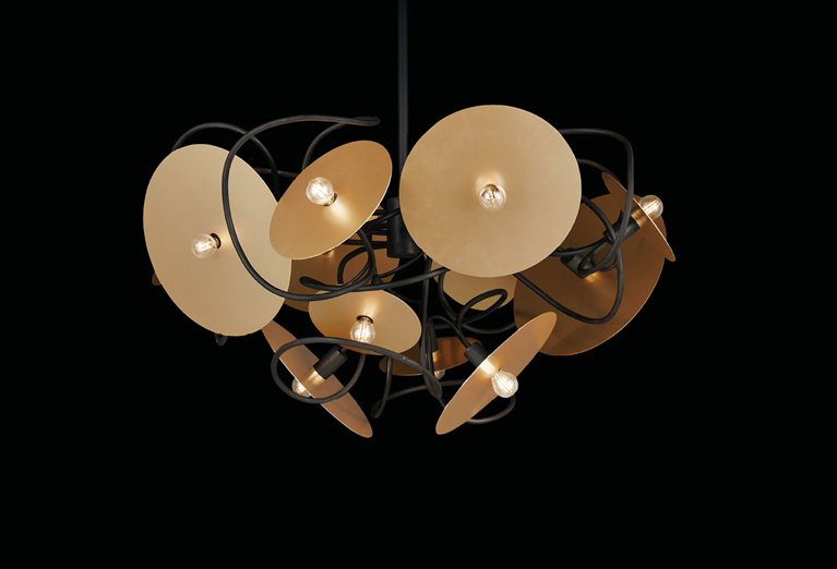 SOLC100BDP-GSF, Ø100xH.55 cm, 12x E14, bronze dark patina finish with gold satin reflectors