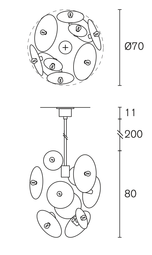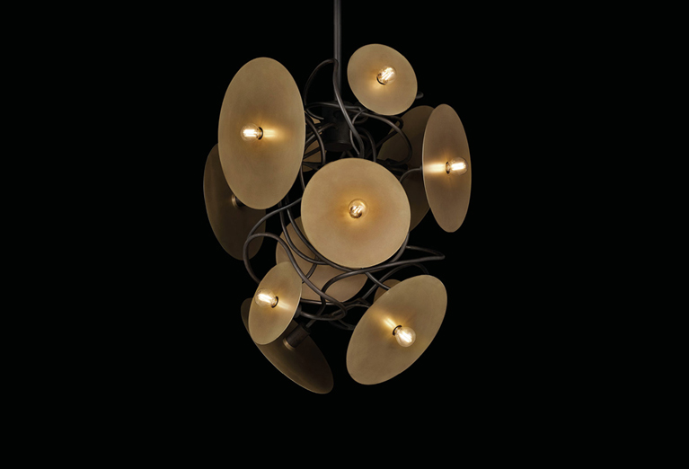 SOLCC70BDP-BRBUR, Ø70xH.80 cm, 12x E14, bronze dark patina finish with brass burnished reflectors