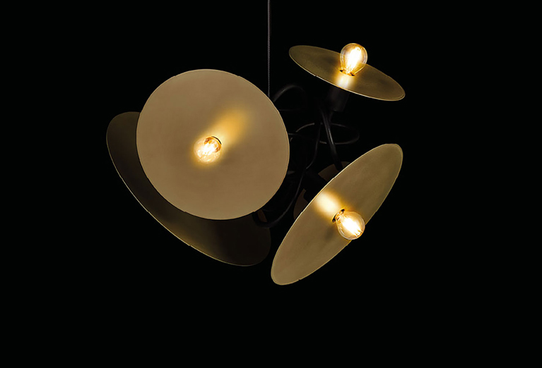 SOLH55BLM-BRBUR, Ø55xH.40 cm, 5x E14, black matt finish with brass burnished reflectors