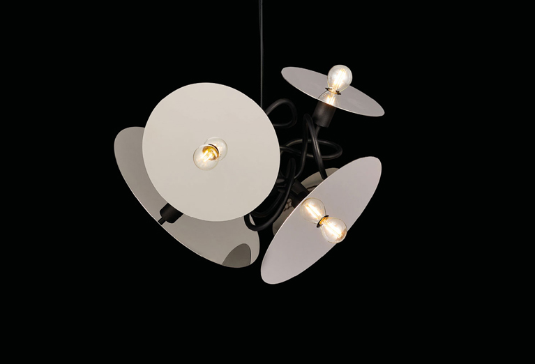 SOLH55BLM-ST, Ø55xH.40 cm, 5x E14, black matt finish with stainless steel reflectors
