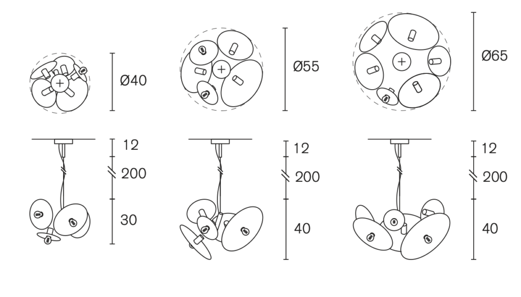 SOLH65BDP-ST, Ø65xH.40 cm, 6x E14, bronze dark patina finish with stainless steel reflectors