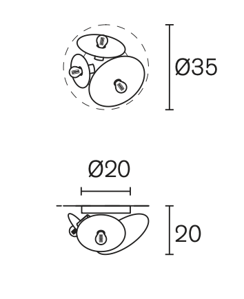 SOLW35BDP-BRBUR, Ø35xH.20 cm, 3x E14, bronze dark patina finish with brass burnished reflectors
