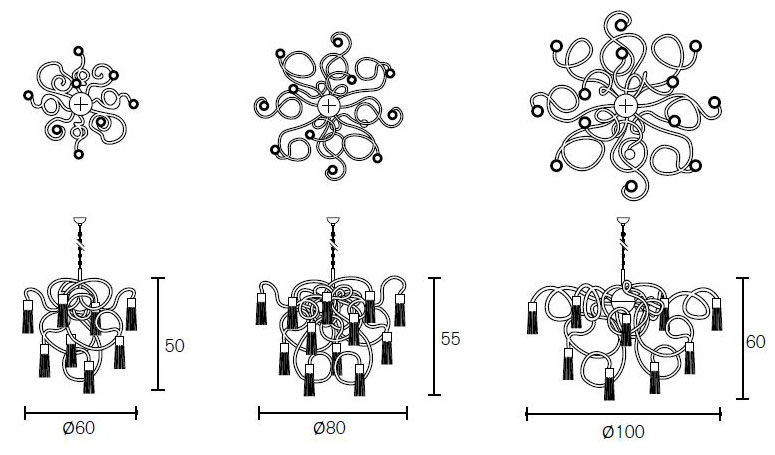 SOSC100N Ø 100 cm, height 60 cm, 14x E14, nickel finish, 35 kg